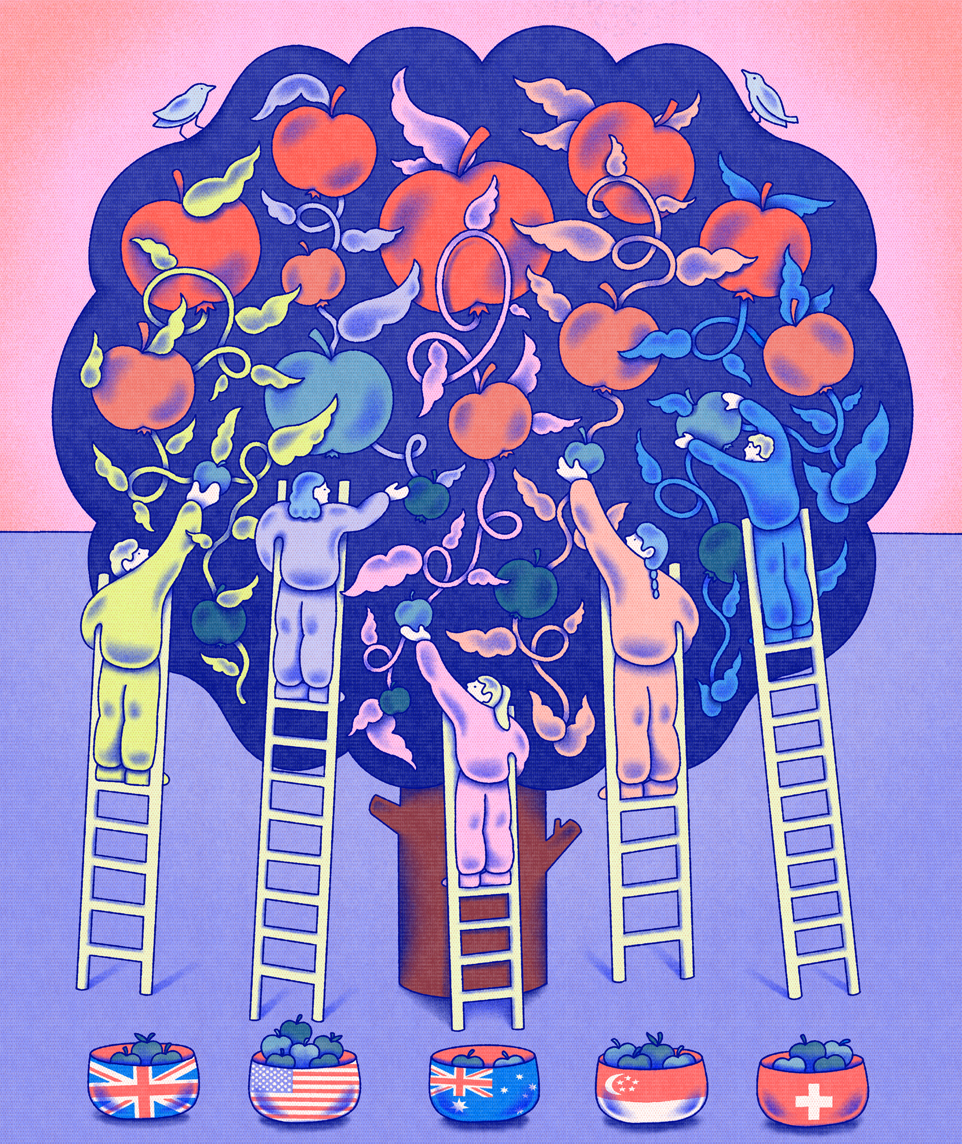 Illustration for an article on Australians being the richest people in the world, yet not having access to their wealth- especially relative to other countries.